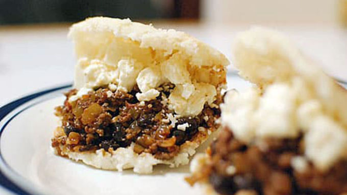Step5Fill the Arepas with the beef and bean filling and add some crumbled queso. Serve!