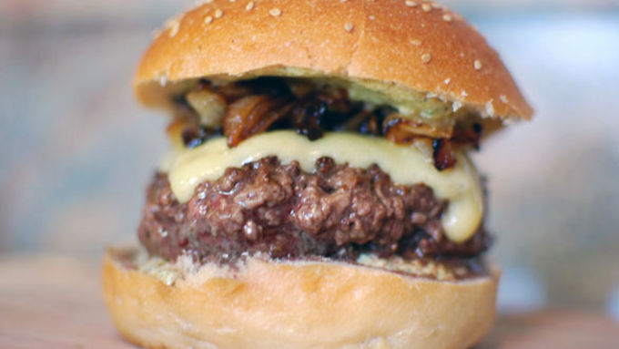 - A new burger chain opened here in Boston called 5 Napkin. They have a few locations in NYC, Miami, and Atlanta, and they have one of the best burgers I have eaten in recent memory. It’s called the 5 Napkin Signature Burger, and it boasts caramelized onions, Gruyere cheese, and a rosemary aioli. This burger is near perfect. The meats are ground fresh, the doneness was exactly to my liking, and the rosemary and onions really complimented the beef without overpowering it. When Tablespoon asked me about Iconic Burgers, and what great burgers I had eaten recently, The 5 Napkin burger instantly came to mind. I couldn't wait to get in the kitchen and try my hand at making a burger so beefy, savory, and delicious! This recipe for a 5 Napkin Signature Burger sure helps if you don’t live close to one of their urban locations! Ground beef is just fine for most burgers I eat, but when I am really trying for something special I grind my own in the food processor. But, store-bought ground beef works great too!