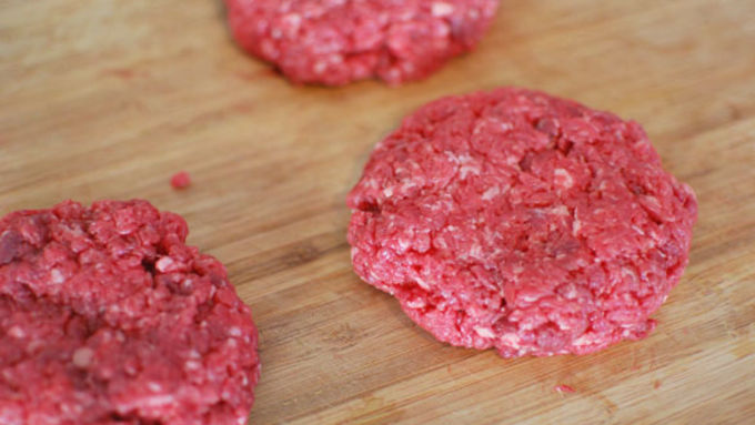 Step3Make the patties - Place your meat in the freezer for about 30 - 45 minutes before you begin. Slice some of the larger chunks of fat off of the meat and slice into cubes. Place in your food processor (with a little salt) in 2 or 3 batches depending on how large your processor is. Pulse about 15 times to make a nice coarse ground beef. Form the beef into 3 patties.
