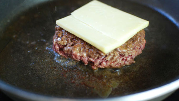 Step4Cook the burgers - In a frying pan with a mix of butter and olive oil, cook the burgers covered and on high heat for around 5 minutes a side. After flipping the first time, add the cheese right away so it melts while the second side cooks.