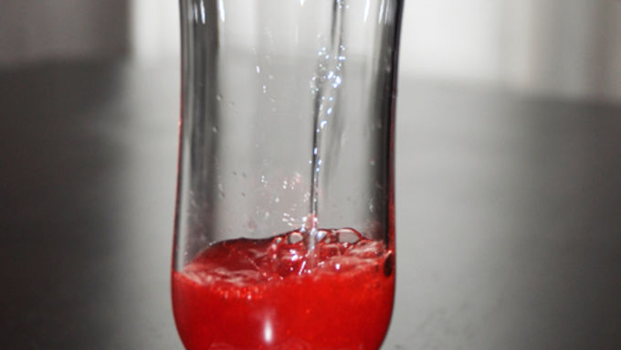 Step1Add 1 tablespoon raspberry syrup to a clean, clear 8 oz glass. (A slender parfait glass works well).