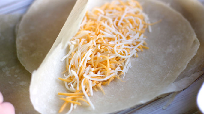 Toss a hearty handful of cheese into the center of a corn or flour tortilla. We love using the fresh tortillas which haven’t yet been browned. They have a soft, thin, chewy texture and cook up well in enchiladas.