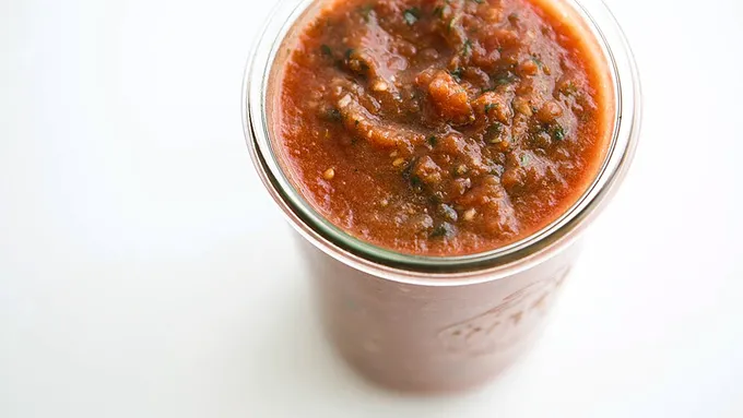 Leave the jarred stuff behind! This homemade tomato marinara sauce can be made in less time and with less effort than it would take for you to run to the store for store-bought marinara.