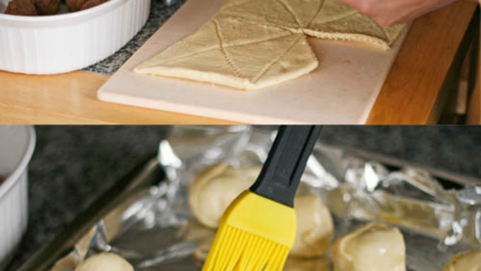 - Tie on your aprons and get into the kitchen! It's time to make these incredibly easy party appetizers! For game day, holiday party, or a casual movie night, these super simple meatball poppers are simple, delicious appetizers. The first time I made these babies, which are sort of like a pig in a blanket, minus the pig, my kids devoured almost the entire batch. The little appetizer-sized meatball, wrapped in Crescent dough and brushed with melted butter and sprinkled with salt is simple … but it’s also amazing. You won’t be able to eat just one. They take about 10 minutes to make and need to bake for less than 15 minutes. Which means that this party appetizer can go from just ingredients to serving platter in just about 30 minutes. I love a fast and easy dish, don’t you?