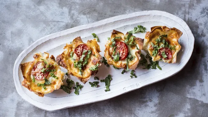 Step6Bake for 18-20 minutes or until edges are brown. Remove from oven and let cool for 5 minutes. To remove, use a knife to loosen the edges, then pop each lasagna cupcake out. Garnish with basil and serve.