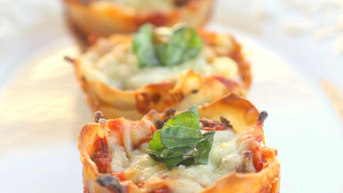 - These lasagna cupcakes are easily made using all of the same ingredients in your classic lasagna with layers of meat, three types of cheese, and wonton wrappers instead of pasta. Usually lasagna looks like a big gooey mess, but when it's in cupcake form it looks elegant and refined. Wonton wrappers are used as the pasta element in this lasagna, eliminating the nightmare and logistics of trying to make pasta noodles cupcake sized. Wonton wrappers are fresh little sheets of pasta that are perfectly sized for these lasagna cupcakes and because of their thinness they cook up super fast. Just take a stack of wonton wrappers and place a drinking glass on top. Using a knife, cut around following the edge of the glass to make circle shapes. If your family fights over the corners of the lasagna pan because of the crispy and chewy corner pieces, with these cupcakes every single lasagna cupcake has the yummy texture of those corner pieces.