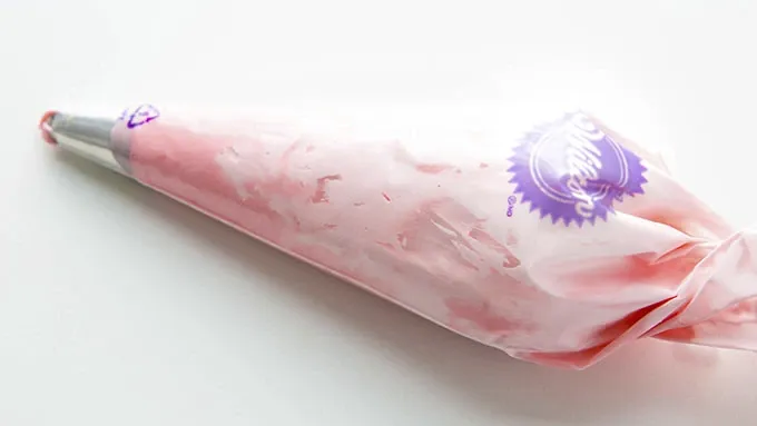 Step2Stir both frostings together until smooth. Transfer both frostings into one large icing bag, fitted with a large star tip, spooning them into the left and right side of the bag. (Note: This is not a perfect science.)