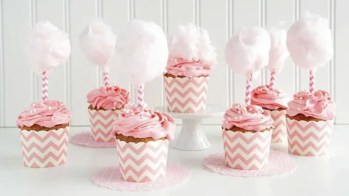 - Let the kid inside of you come out to play. You’ve been doing far too many grown-up things lately and deserve to let loose a little. Put your hair in pigtails. Go barefoot. Crayon the rainbow in a coloring book. Wish upon a star. Eat cotton candy. Actually, you’re a grown up now. You deserve to have double the fun! Eat cotton candy cupcakes. Pink ones. Because every day deserves a party. This is what being a grownup is all about, you know. If desired, create mini cotton candy sticks for the tops of the cupcakes by gently wrapping store-bought cotton candy around the top of paper straws. Snip straws to desired length and press into center of frosted cupcakes. This sounds complex, but it’s surprisingly easy. Just gently wrap and pinch the cotton candy in place until it’s round on top of the straws. Now, prepare the frostings. I like adding a teensy splash of coconut and butter extracts because I promise it boosts the cotton candy flavoring. You’ll also want to stir the frostings until smooth and even. Swirl your icing on top and sprinkle with white pearl nonpareils. A gentle press of cotton candy straws into the center of each cupcake, and your little treats are done! Invite a friend over to play. Put on fuzzy slippers. Wear your favorite cartoon t-shirt. Tell yourself it’s your birthday. Eat cupcakes for dinner. Lick your fingers. Kiss a frog. Let all your dreams come true. Being a grown-up is deliciously pinkalicious. Isn’t it?