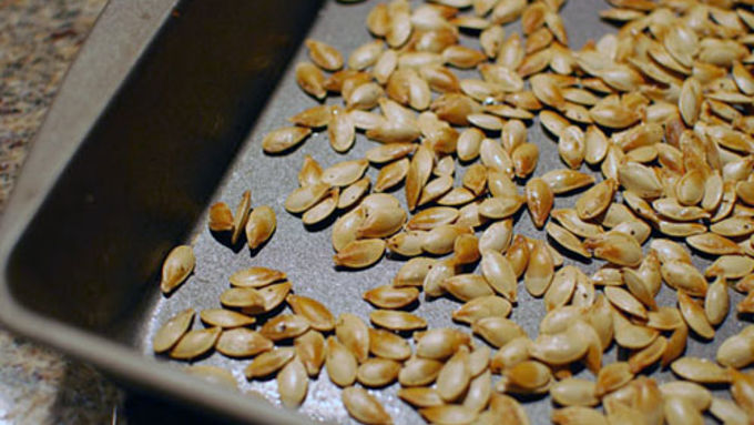 Step2Meanwhile, rinse the seeds, lightly toss in oil, and bake until lightly browned.