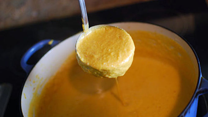 A classic pumpkin soup, lightly touched with the flavors of a Thai curry.