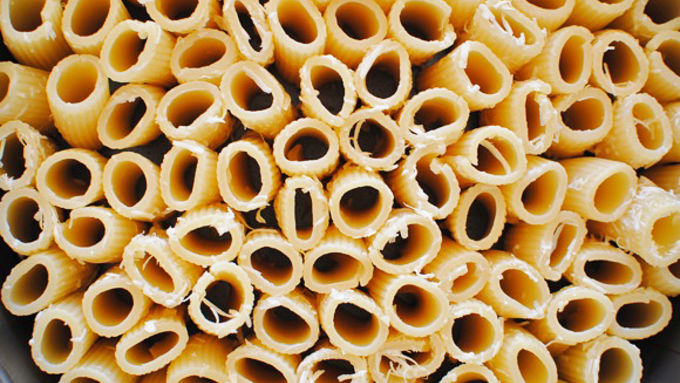 Step3In the meantime, cook the rigatoni until it's slightly underdone. Drain and rinse with cool water. Toss with parmesan cheese. Lightly oil a 9-inch spring form pan. Tightly pack the rigatoni in the pan, standing on their ends.![]()