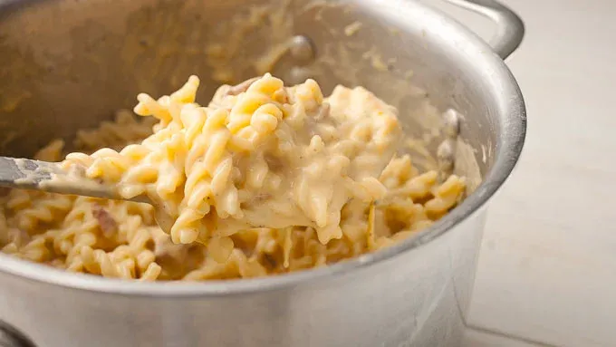 - One pot = one delicious cheesy pasta dinner! Is there any more iconic American pasta dish than macaroni and cheese? But, let’s be honest, the boxed stuff can get a bit boring. Luckily, with just a few extra minutes (and some really good smoked Gouda) we can take our macaroni and cheese game to another level! If you wanted make this with elbow macaroni, you definitely could, but the sauce is so creamy that I think sturdier pasta like fusilli works better. This one pot dish is so rich and creamy! Dig in while it’s hot.