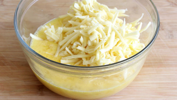 Step3Make the egg mixture: Combine the beaten eggs, salt, pepper and Irish mature cheddar cheese in a bowl.