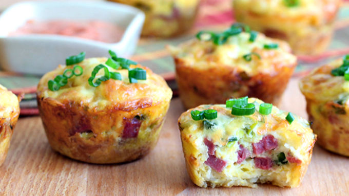 Step4Put a heaping tablespoon of chopped corn beef in each muffin cup followed by a heaping tablespoon of the leek mixture. Put 3 heaping tablespoons of the egg/cheddar mixture in each muffin cup. Distribute any leftover mixture.