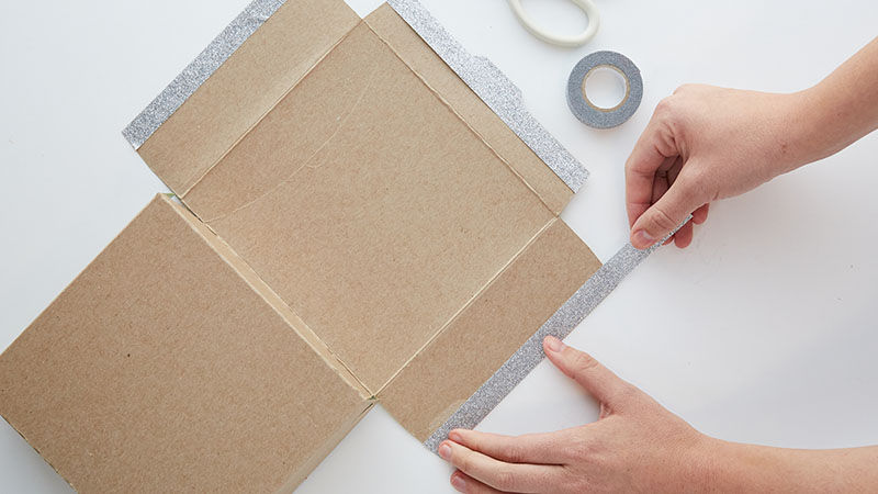 You can wrap your DIY gift boxes—like we did with the Cheerio’s box above—or you can turn the boxes inside out and skip the wrapping all together. Start by carefully taking apart the seams of your box until it’s completely deconstructed.