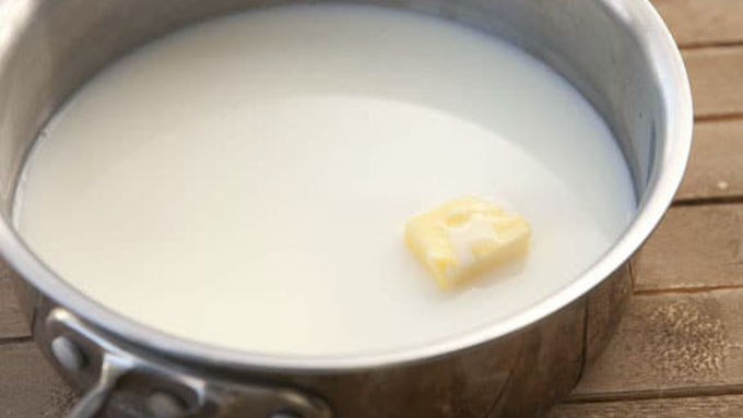 Step4FOR GRITS: Heat water, milk, butter, and salt in a medium pot. Bring to a simmer over medium heat.![]()