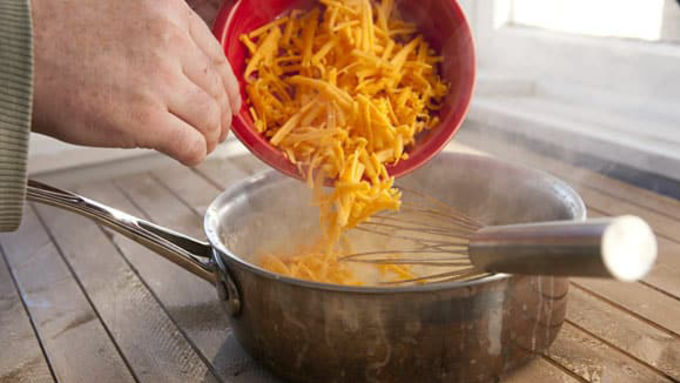 Step6Simmer grits over medium heat until they thicken nicely, about 10 minutes. Then add cheese and melt.![]()
