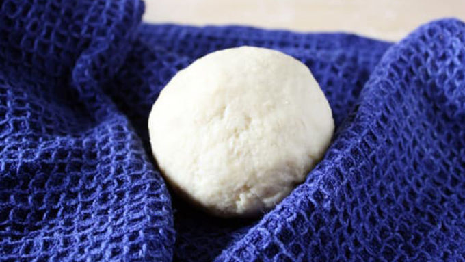 Step3Shape dough into a ball and place in a damp towel for 45 minutes.