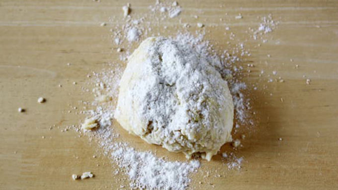 Step2Using a fork, slowly incorporate dry ingredients into wet ingredients until just combined. Pour dough onto a clean surface and sprinkle with flour. Knead dough until tough, adding more flour as needed until dough can take a mild punch and is barely sticky (it should be quite a bit tougher than bread dough).