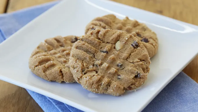 If there were a contest for least ingredients in a chocolate chip peanut butter cookie, we’re pretty sure ours would win first place. Super chewy and ready in about 15 minutes, this flour-free dessert is perfect for late-night and last-minute cravings.