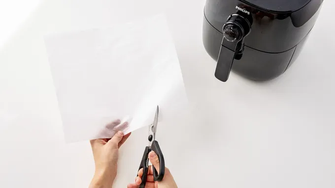 Step1Cut 8-inch round of parchment paper; place in bottom of air fryer basket. Spray with cooking spray.