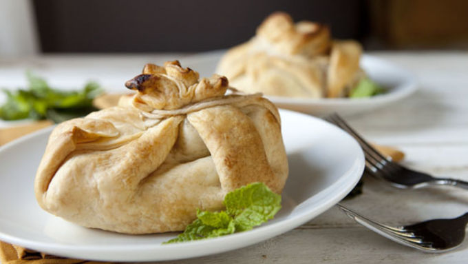 Step5Place bundles on a baking sheet lined with parchment paper. If there are any holes in the bundles, try to cover them with leftover crust. Bake bundles at 425°F until they are a deep golden brown, about 30-35 minutes.![]()