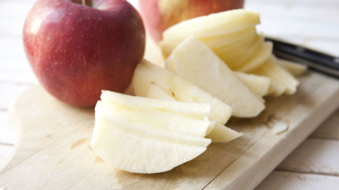 Step1Preheat oven to 425°F. Peel apples, core them, and slice into thin slices.![]()