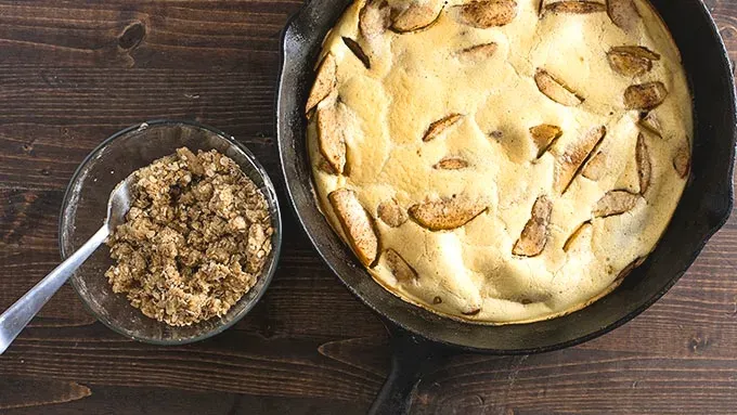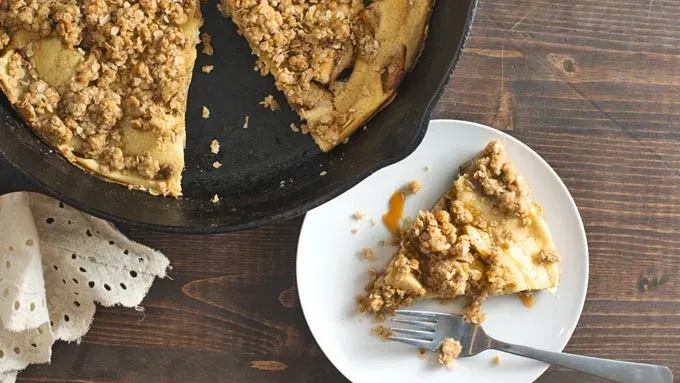 - Pannekoeken? Panekuchen? Dutch Baby? Whatever you call it, a giant oven-baked pancake is always delicious. Is there ever a time in life that does not call for pancakes? Yes, actually. There is. And that time is when you’re too busy doing other breakfast-y things (hello, bacon, you time consuming bit of deliciousness, you) to stand around flipping flapjacks. That’s when the Dutch baby comes in. This fall, let’s go ahead and mix things up in the Dutch baby department. Let’s bring in some apples. And some streusel. And maaaaaaybe a little drizzle of caramel, because caramel and apples go together like pumpkin and lattes. You know? What comes out of your oven will smell like fall, taste like a dream, and be begging for a drizzle of caramel sauce or pure maple syrup. Dig in, guys!