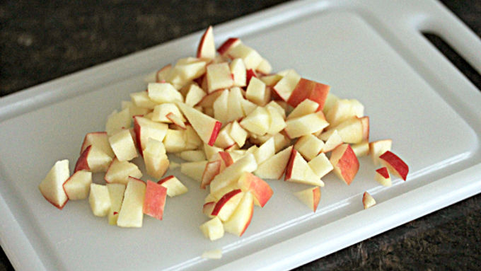 Step4Cut half an apple into small cubes and set aside.