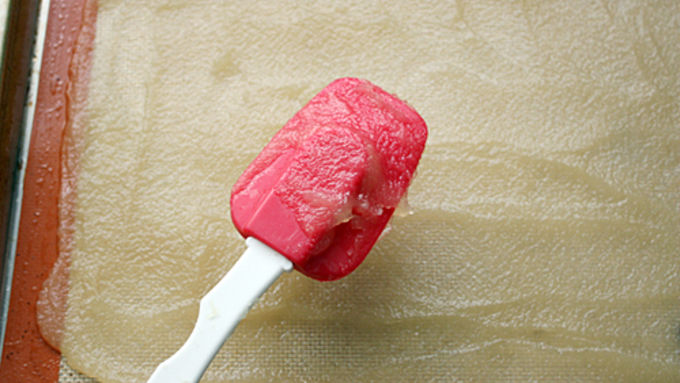 - If there’s a shortcut or a more convenient route when it comes to recipes, I’m all for it. But if I’ve got the time and I’m in the mood for making something homemade – even if it’s readily available at the grocery store – I’ll do that, too, especially if it renders flavors I can’t necessarily find anywhere else. This Apple-Ginger Fruit Leather is one example. While I have absolutely loved Fruit Roll-Ups ever since I could wield a backpack and a lunchbox, there is something about making my own version from scratch every once in a while that’s fun for me. And I can make crazy flavors, like apple-ginger or strawberry-lime or blueberry-banana. Consider it the “fruits” of my labor, if you will – things that take extra preparation just taste better sometimes. Sure, it’s a bit time-consuming, but most of that time can be spent playing Scrabble or taking a nap or having a staring contest with your cat. And whatever active time there is in the recipe is spent mostly whirring a blender, staring at a stovetop and using a spatula to spread out the leather very, very thin. Here’s how you do it: Voila! Homemade fruit leather. Now go enjoy while you finish the staring contest with your cat.