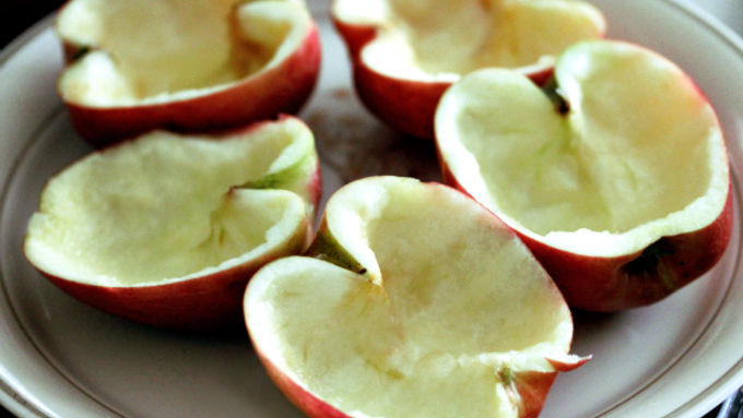 Step3Cut your apples in half and with a spoon, core out the flesh to create little apple cups.