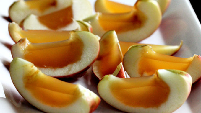 - Fall is coming! Fall is coming! Who else is excited that it’s finally apple season? Celebrate fall with Apple Slice Jelly Shots. They are perfect for a party. You prep them the day before and slice them up before your guests arrive. I guarantee you, everyone will wonder how you got the jelly in between the slices. Aren’t you the creative one? You’ll want to send them to the recipe below cause these are definitely a great way to get your fruit and drink in at the same time! Once set, slice into wedges and serve!