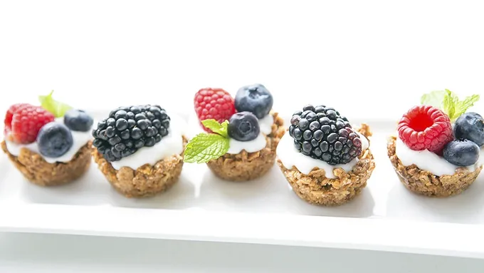 Step4Spoon 2 tablespoons yogurt into the bottom of 6 large shot glasses. Drizzle with caramel sauce. Press several pie “fries” and sliced apples into each cup. Serve and enjoy!