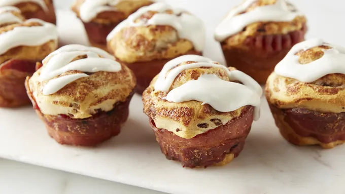 Two breakfast favorites, bacon and cinnamon rolls, combined into your NEW favorite!