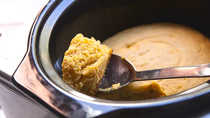 Step5Remove cornbread from oven and cool 5 minutes in pan before removing and placing on a cooling rack. Cool completely before slicing.