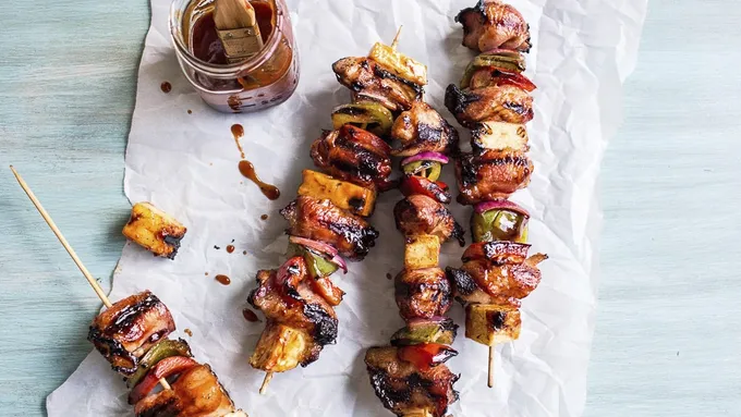 Nothing screams summertime like food on a stick. We wove pineapple, chicken and veggies with strips of smoky bacon and slathered on an irresistible sweet and sticky Hawaiian sauce. It’s time to fire up the grill—like now.