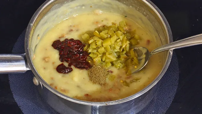 Step3Add the chipotles, diced green chilies and ground cumin to the dip. Add the shredded cheese and stir until melted.