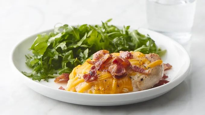 - Chicken bacon ranch is nothing new; we’ve pretty much found a way to bring that flavor combo into everything from appetizers to weeknight dinners. This recipe only needs a few ingredients before it goes from grill to gone. Thick-cut bacon is the secret to success in this recipe since it can withstand the grill and won’t fall apart when it’s wrapped around the chicken breast. Experiment with your favorite bacon flavors or even use turkey bacon—just make sure you buy thick cut. We paired this grilled chicken dinner with even more ranch for dipping. If there is such a thing as too much ranch, swap in barbecue sauce for another delicious dipping option. And because you can never have enough chicken dinner recipes, we created an entire page of our very best chicken dinners!