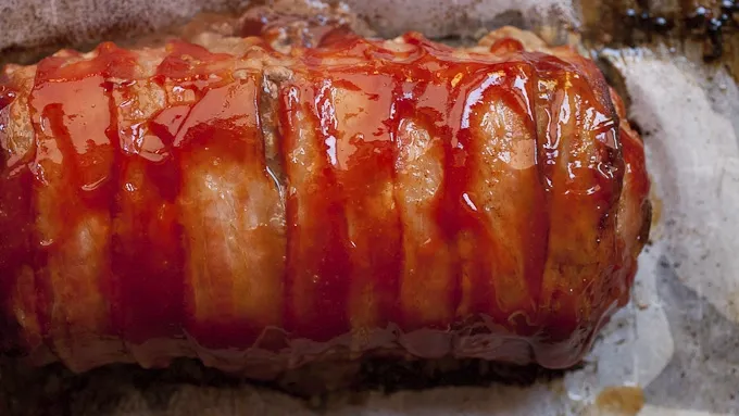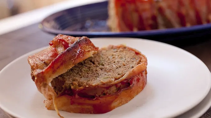 var configuration = {"title":"Bacon-Wrapped Meatloaf","introduction":"Homemade meatloaf just like mom used to make has nothing on this bacon-wrapped meatloaf. With a brown sugar-ketchup glaze and whole strips of bacon, this mighty meatloaf is a flavorful meal that’s far from the dry brick that haunts many childhood memories. So the next time you want a throwback dinner but with a delicious updated twist, try this bacon-wrapped meatloaf.","servingSize":"1 Serving","image":{"small":{"media":"(min-width: 0px)","src":"https://mojo.generalmills.com/api/public/content/l_grh57k6UWShfZHl8hnGg_webp_base.webp?v=ee1454d6\u0026t=e724eca7b3c24a8aaa6e089ed9e611fd"},"medium":{"media":"(min-width: 500px)","src":"https://mojo.generalmills.com/api/public/content/l_grh57k6UWShfZHl8hnGg_webp_base.webp?v=ee1454d6\u0026t=191ddcab8d1c415fa10fa00a14351227"},"large":{"media":"(min-width: 767px)","src":"https://mojo.generalmills.com/api/public/content/l_grh57k6UWShfZHl8hnGg_webp_base.webp?v=ee1454d6\u0026t=191ddcab8d1c415fa10fa00a14351227"},"alt":"Bacon-Wrapped Meatloaf"},"contributor":{"label":"by:","name":"Macheesmo","profileUrl":"/contributors/macheesmo","displayDate":{"label":"Updated","date":"Jul 2, 2019"}},"ingredientGroups":[{"ingredients":[{"quantity":"2","description":"lbs lean ground beef "},{"quantity":"1","description":"cup onion, diced"},{"quantity":"1/2","description":"cup green bell pepper, diced"},{"quantity":"2","description":"cloves garlic, minced"},{"quantity":"1","description":"tablespoon Worcestershire sauce"},{"quantity":"2","description":"large eggs"},{"quantity":"1/2","description":"cup rolled oats"},{"quantity":"1","description":"teaspoon kosher salt"},{"quantity":"1","description":"teaspoon black pepper"},{"quantity":"","description":"10-12 strips bacon"}]},{"name":"Ketchup glaze:","ingredients":[{"quantity":"1/3","description":"cup ketchup"},{"quantity":"2","description":"tablespoons brown sugar"},{"quantity":"1","description":"teaspoon paprika"}]}],"steps":[{"description":"Preheat oven to 350° F. Line a 9 x 5-inch loaf pan with slightly overlapping pieces of bacon."},{"description":"In a medium-sized bowl, mash together beef, onions, bell pepper, garlic, Worcestershire sauce, eggs, oats, salt and pepper.","stepShotImageUrl":"//mojo.generalmills.com/api/public/content/o67V7p71nEWwZo3yC7Hx7g_webp_base.webp?v=8140c160\u0026t=3653fe2f5ecd4a47a5a51c97e429947c"},{"description":"Spread 2 tablespoons of glaze over the bacon in the loaf pan. ","stepShotImageUrl":"//mojo.generalmills.com/api/public/content/6UJFdfpFsEWRpY0DtSlkpA_webp_base.webp?v=21664e6e\u0026t=3653fe2f5ecd4a47a5a51c97e429947c"},{"description":"Then press the meatloaf mixture into the pan. ","stepShotImageUrl":"//mojo.generalmills.com/api/public/content/q678xIN5F0mWtKfiL8ddyg_webp_base.webp?v=d31f0191\u0026t=3653fe2f5ecd4a47a5a51c97e429947c"},{"description":"Fold any overhanging bacon over the top of the loaf pan. Flip the loaf pan onto a baking sheet lined with foil or parchment paper. Carefully wrap the ends of the meatloaf with bacon as well, tucking the strips into the other pieces of bacon so it’s tight.","stepShotImageUrl":"//mojo.generalmills.com/api/public/content/2ZNqstERJUqqiSULuTH5kg_webp_base.webp?v=68ad5b76\u0026t=3653fe2f5ecd4a47a5a51c97e429947c"},{"description":"Bake meatloaf at 350° F for 50 minutes. Remove meatloaf, brush with ketchup glaze and return to oven for another 15-20 minutes. Finished meatloaf should have crispy bacon edges and reach an internal temperature of 165° F in the center of the meatloaf.","stepShotImageUrl":"//mojo.generalmills.com/api/public/content/2ZQSpkT_dk2vnj7K_mh7fw_webp_base.webp?v=33722eb0\u0026t=3653fe2f5ecd4a47a5a51c97e429947c"},{"description":"Let meatloaf rest for 10 minutes before slicing and serving.","stepShotImageUrl":"//mojo.generalmills.com/api/public/content/J7KqLtDbCU6gp9uVTzm3qw_webp_base.webp?v=3fc6d300\u0026t=3653fe2f5ecd4a47a5a51c97e429947c"}],"tips":[{"title":"","description":"Be sure to use a meat thermometer to make sure the internal temperature is 165°F to know that the meatloaf is done. Letting the meatloaf rest for 10 minutes helps the meatloaf hold together better while slicing.","category":"Techniques","tipShots":[]},{"title":"","description":" Add even more flavor by using peppered bacon, maple-glazed bacon or applewood-smoked bacon.","category":"Variation","tipShots":[]},{"title":"","description":"To make the meatloaf spicy, you can mix cayenne or red pepper flakes to the meat mixture. You can also add Sriracha to the ketchup glaze. ","category":"Variation","tipShots":[]},{"title":"","description":"While bacon-wrapped meatloaf is pretty amazing on its own, don’t stop there! Check out these other \u003ca href=\u0022https://www.tablespoon.com/dishes/meatloaf\u0022\u003emeatloaf recipes\u003ca/\u003e for easy and delicious meal planning.","category":"Variation","tipShots":[]},{"title":"","description":"Lining the baking sheet with foil makes clean up a breeze.","category":"Techniques","tipShots":[]},{"title":"","description":"Take your dinner to the next bacon-wrapped level with delicious homemade meatloaf, wrapped in bacon and a ketchup glaze!\r\n\r\nMany of us have memories of meatloaf as a kid and, at least for me, these memories aren’t the best. Meatloaf was this blank, dry thing that I would just drench in ketchup.\r\n\r\nBut it doesn’t have to be that way! There are some really great ways to make a great meatloaf and keep it juicy and wonderful. My new favorite method is to wrap the whole thing in bacon. This looks stunning but is actually pretty easy to execute. You can make it happen!","category":"Editorial","tipShots":[]}],"kitchenTips":[{"title":"","description":"Be sure to use a meat thermometer to make sure the internal temperature is 165°F to know that the meatloaf is done. Letting the meatloaf rest for 10 minutes helps the meatloaf hold together better while slicing.","category":"Techniques","tipShots":[]},{"title":"","description":