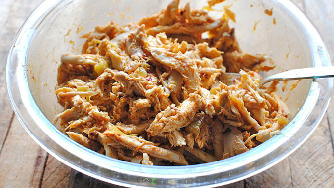 Step1In a large bowl, combine the chicken, chiles and taco seasoning. Stir well to get everything coated.