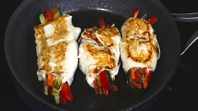Brown the chicken rolls on all sides, then place the lid on the pan, reduce the heat to medium and cook for a couple of minutes or until the chicken is cooked through.
