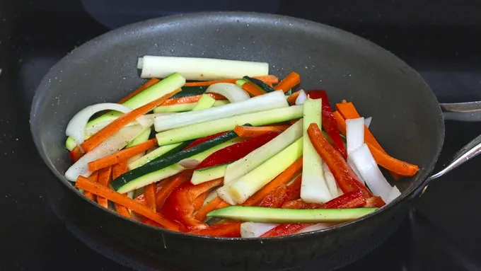 Slice the vegetables into thin strips.