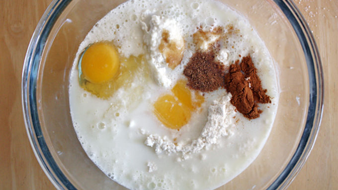 Step2Stir together all ingredients in a large bowl (a few remaining lumps are OK).