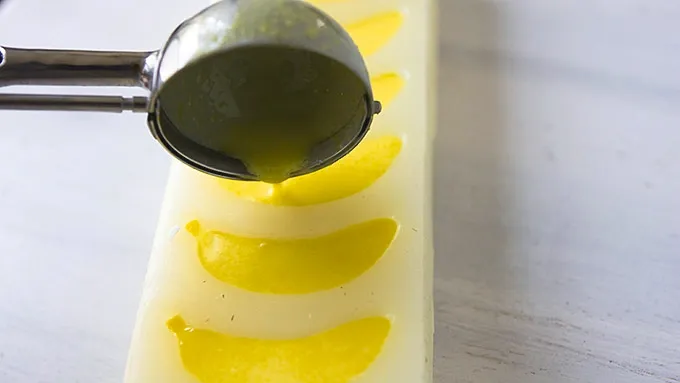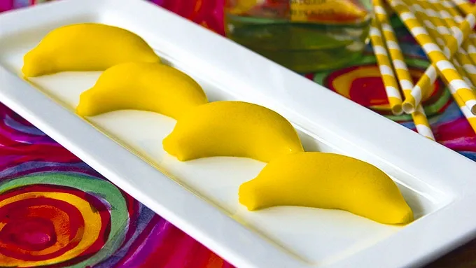 Step2Spoon jello mixture into banana-shaped molds, or pour into a parchment-lined 9x9-inch baking pan. Refrigerate until firm, about 2-3 hours.