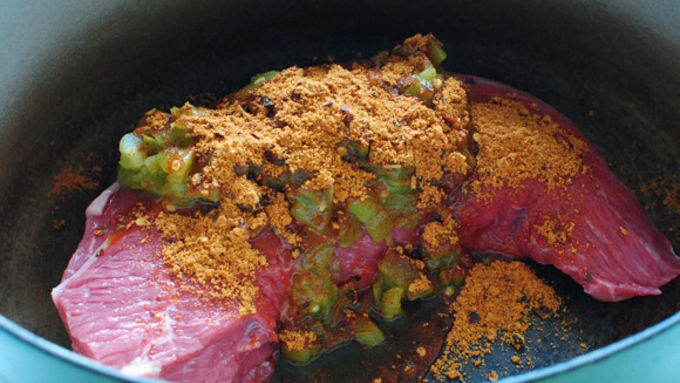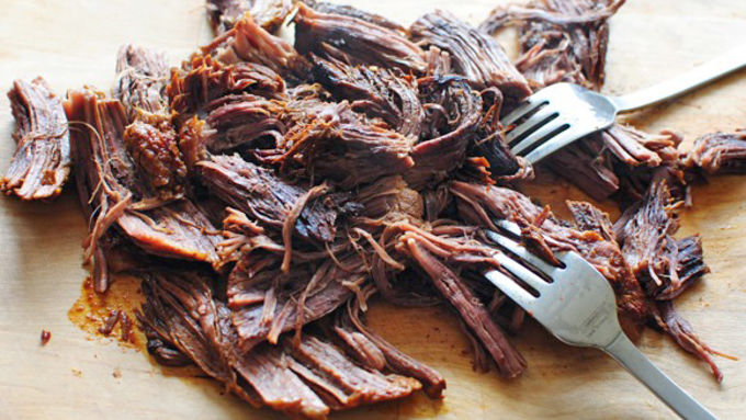 Step2Remove the beef from the pot and shred with two forks. Place back into the pot and keep on low until you're ready to assemble the enchiladas.