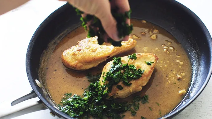 Step4Add the parsley and lemon juice; simmer another minute or two.