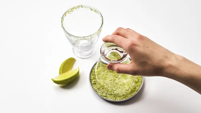 Step2Combine lime zest and salt. Run a lime wedge around the rim of 2 large glasses, then dip them in the lime-salt mixture.
