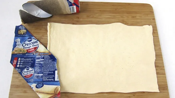 Step2Unroll the crescent dough onto your work surface. If using crescent roll, unroll dough, separate into 2 large rectangles. Overlap the long sides to form a rectangle that is about 12x7 inches. Firmly press the edges and perforations to seal.