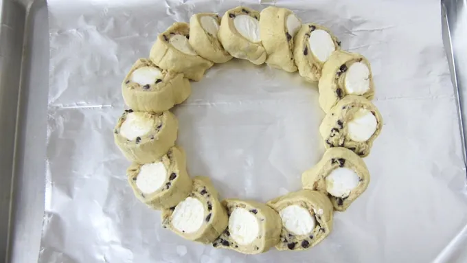 Step5Use a serrated knife to cut the log into 14 slices. Arrange the slices on a cookie sheet in a circle, leaning each slice against the previous one. Tuck the last slice under the first to complete the ring.
