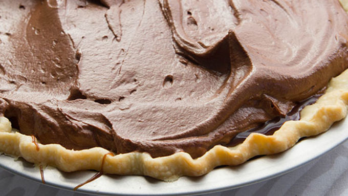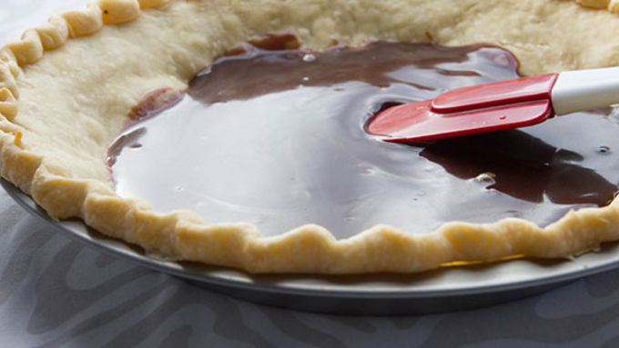 Step5Spoon chocolate mixture into the pie crust, atop the hot fudge layer.